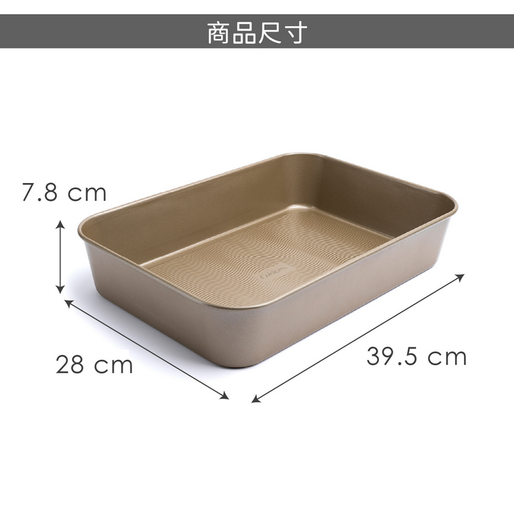 品牌:加拿大 Cuisipro材質:碳鋼、不沾雙塗層尺寸:長 39.5 x 寬 28 x 高 7.8 cm;內圍長 38.2 x 寬 26.3 cm重量:1130 g產地:中國