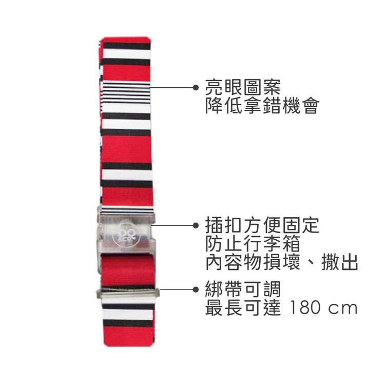 3. 適用各式大小的行李箱;綁帶可調整最長至180cm;最大可搭配 30 吋以上胖胖箱、行李箱。