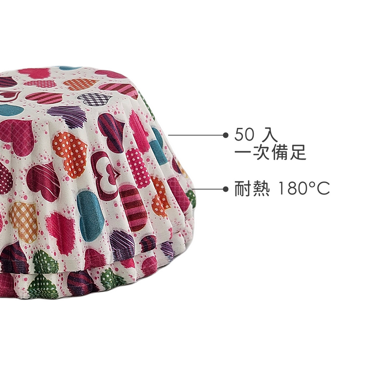 美國 Fox Run - 瑪芬蛋糕紙模50入(繽紛愛心7.5cm)