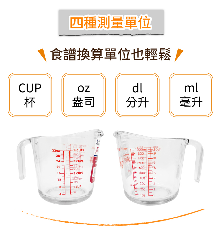 品牌:美國 FOX RUN BRANDS材質:強化鈉鈣玻璃尺寸:含柄長 19.3 x 寬 14.7 x 高 14.5 cm、杯口內徑 13.5 cm容量:約 1000 ml (1 L)重量:1042 g產地:美國備註:進口商品無維修服務;商品尺寸可能因人工測量而略有誤差