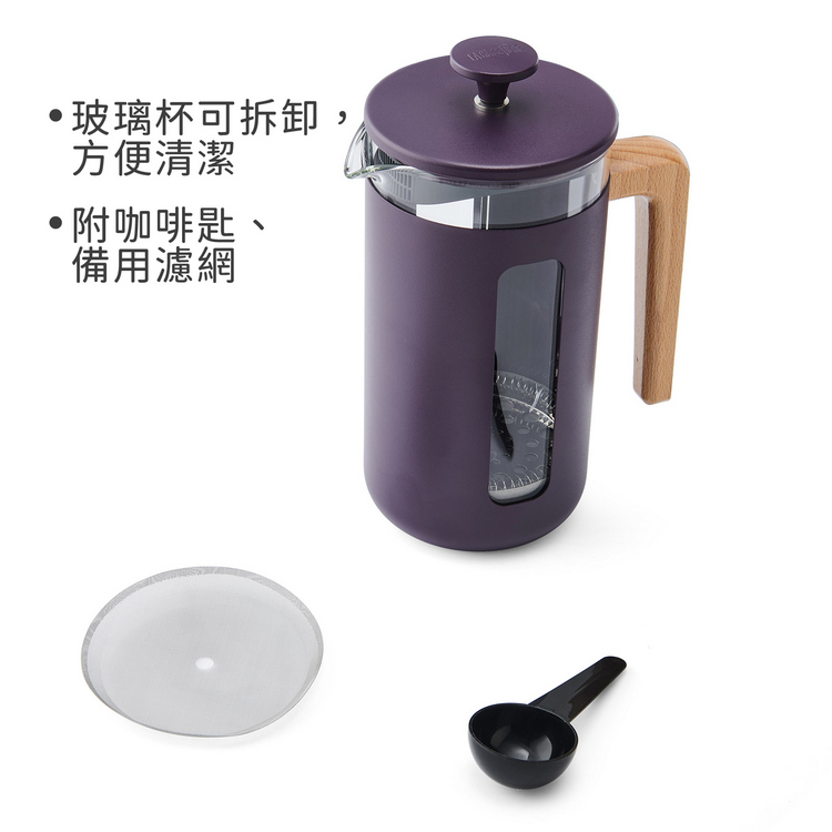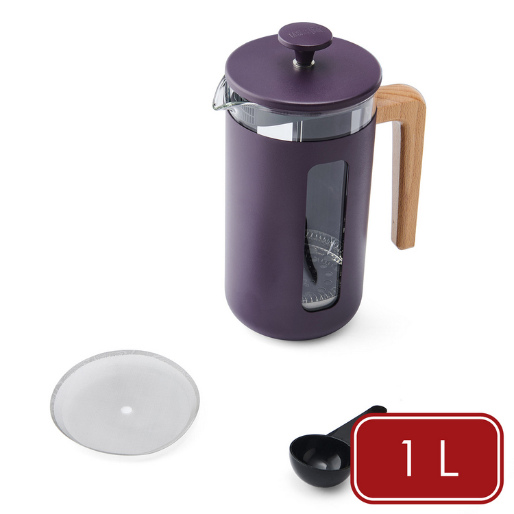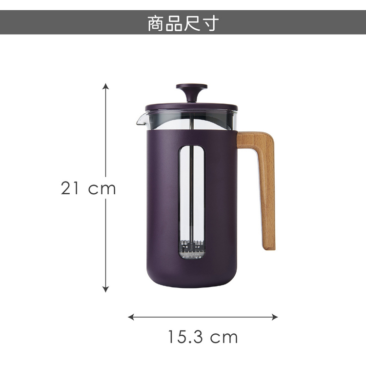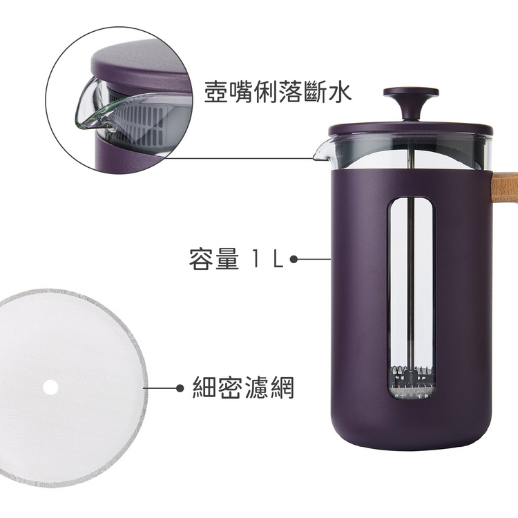 品牌:英國 La Cafetiere材質:硼矽玻璃、304 不鏽鋼 (內部)、201 不鏽鋼 (外部)、櫸木 (握柄)、PP 塑料 (出水濾蓋)尺寸:含柄長 15.3 x 寬 9.8 x 高 21 cm重量:960 g產地:中國容量:約 1L (1000ml)