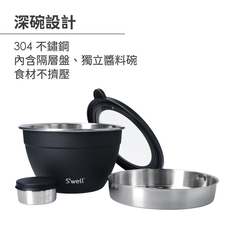 美國 S'well - Kit醬料罐+防漏不鏽鋼沙拉碗(曜石黑1.9L)