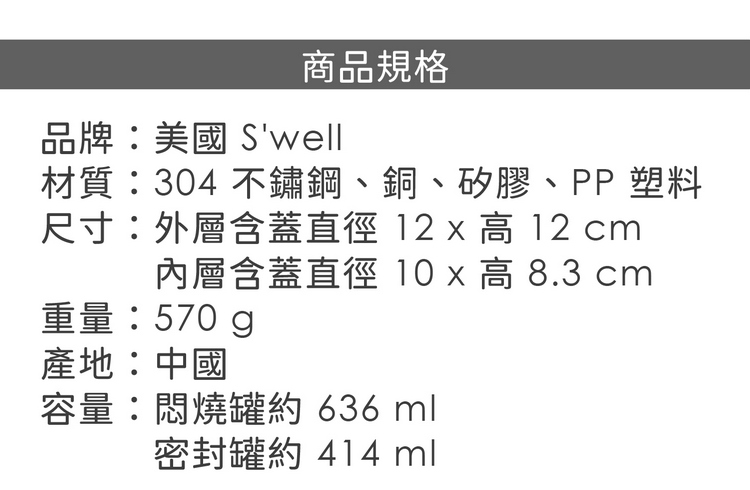 容量:悶燒罐約 636 ml、密封罐約 414 ml