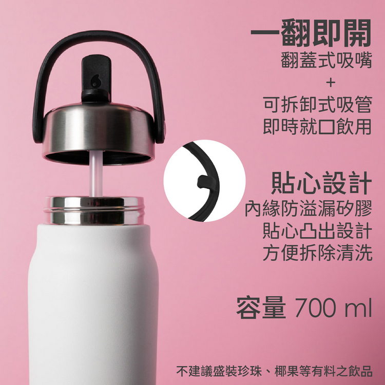 品牌: 美國 S'well材質:304 不鏽鋼、銅、矽膠、塑料尺寸:含蓋長 9 x 寬 7.3 x 高 25.8 cm;瓶口內徑 5.5 cm;提把寬 6.7 x 高 4.3 cm重量:430 g產地:中國容量:約 700 ml