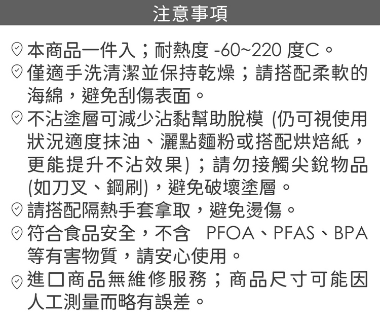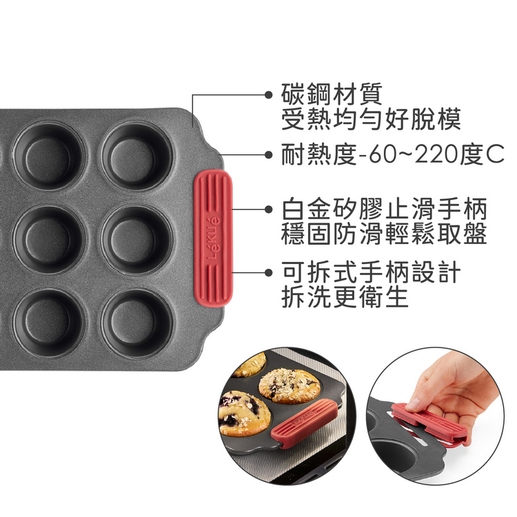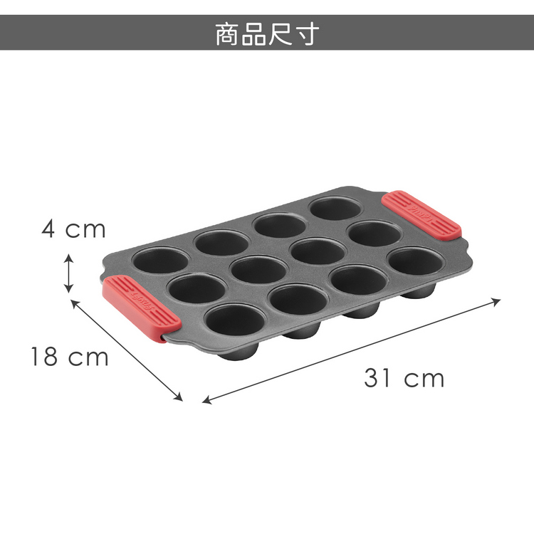 品牌:西班牙 LEKUE材質:碳鋼、陶瓷不沾塗層、白金矽膠尺寸:含手柄長 31 x 寬 18 x 高 4;單格內徑長 4.5 cm重量:540 g產地:中國