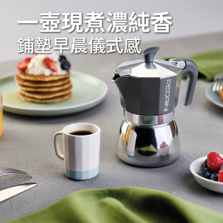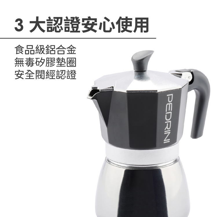 品牌:義大利 PEDRINI材質:食品級鋁合金 EN 601、不鏽鋼、矽膠、尼龍 66尺寸:含壺耳長 13 x 寬 8.7 x 高 14.5 cm;底徑 8.7 cm重量:420 g產地:中國容量:約 100 ml