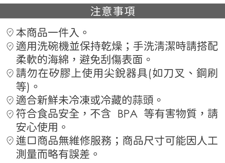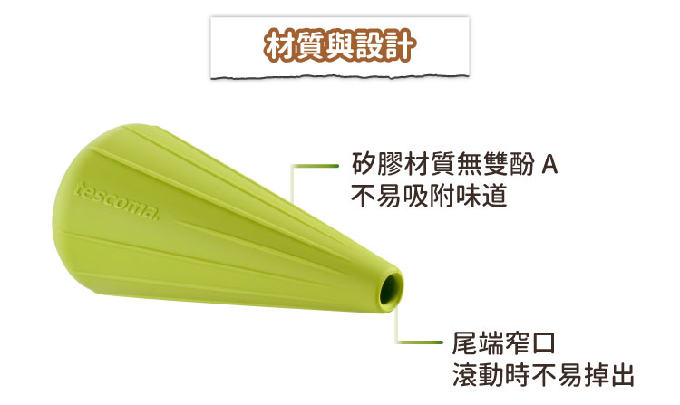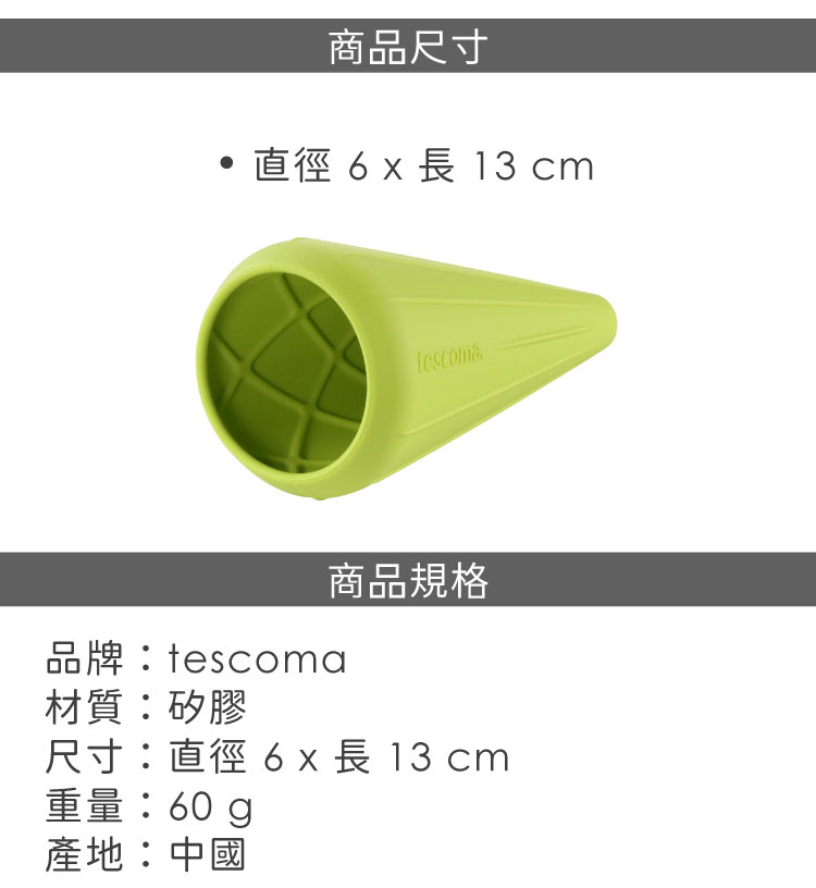 品牌:義大利 tescoma材質:矽膠尺寸:直徑 6 x 長 13 cm重量:60 g產地:中國備註:進口商品無維修服務;商品尺寸可能因人工測量而略有誤差
