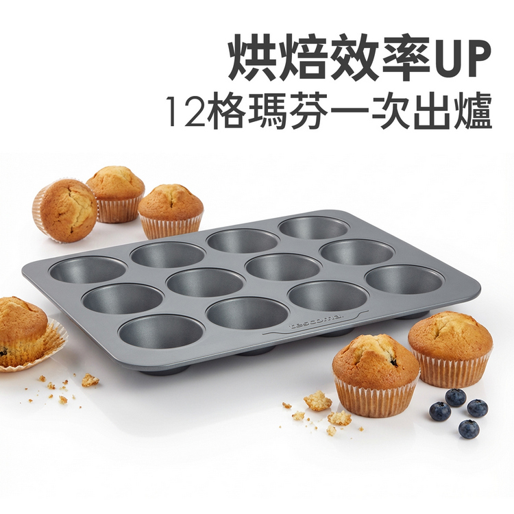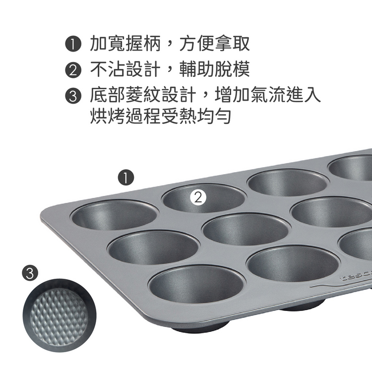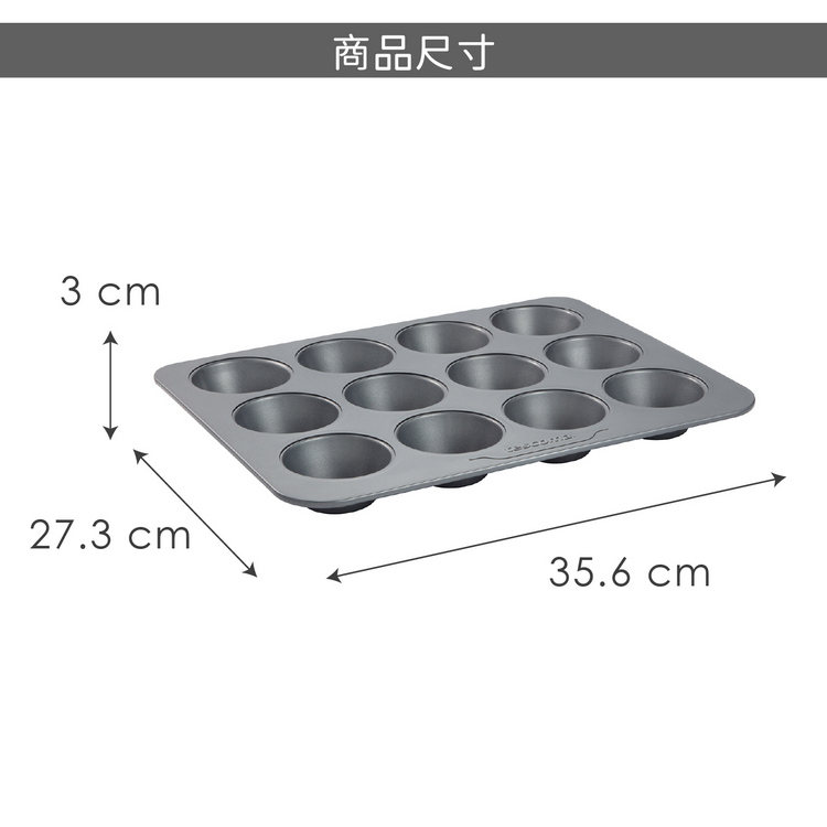品牌:tescoma材質:不沾塗層鋼 (聚酯漆)尺寸:長 35.6 x 寬 27.3 x 高 3 cm;單格內徑約 7 x 高 3 cm重量:600 g產地:中國