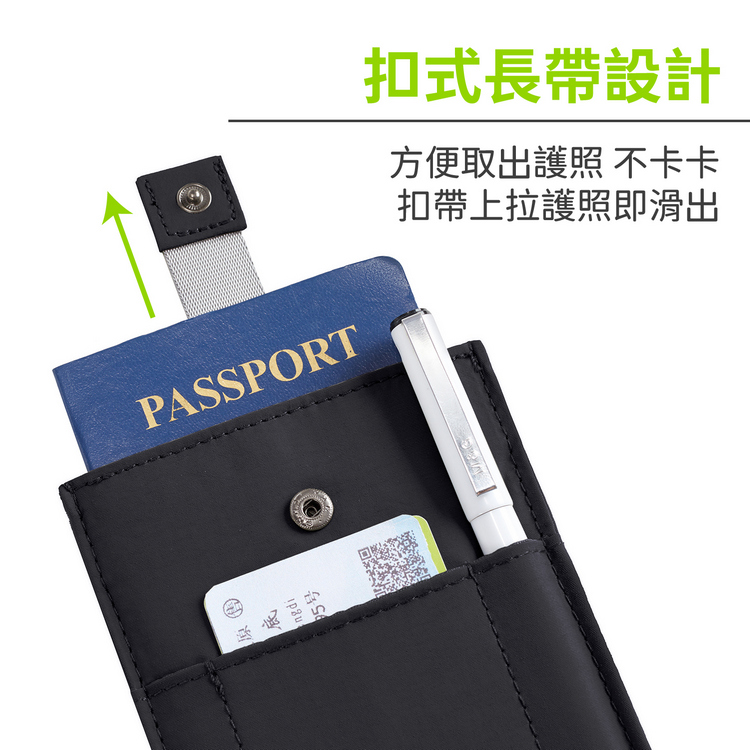 美國 TRAVELON - 防盜扣式護照夾(墨黑)