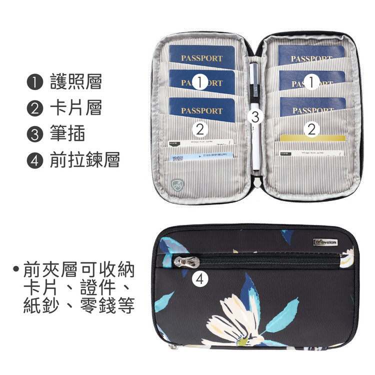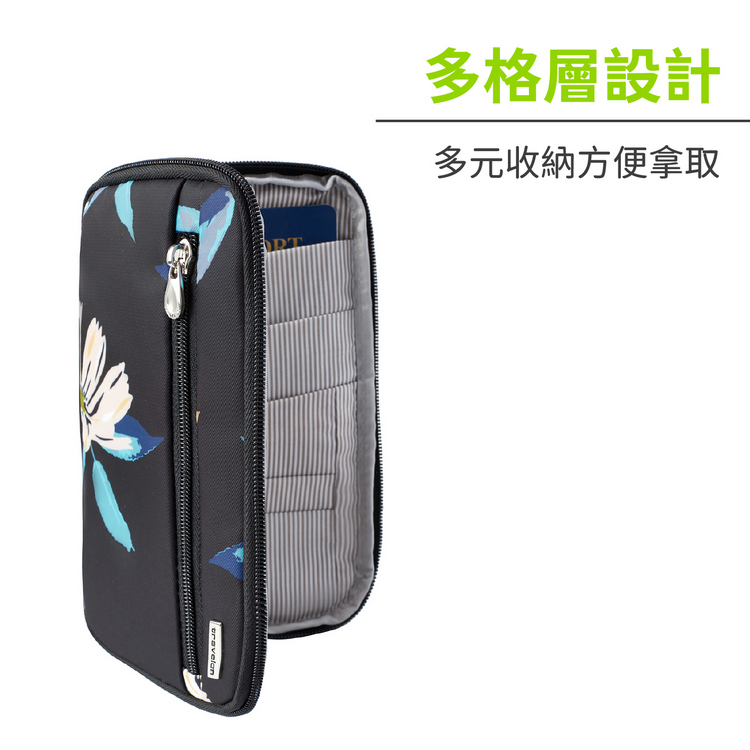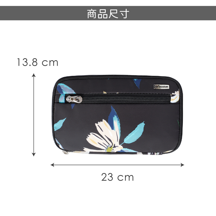 品牌:美國 TRAVELON材質:尼龍、聚酯纖維尺寸:長 23 x 寬 13.8 x 高 1.5 cm;前拉鍊層長 15 cm、主拉鍊層長 20.5 cm、護照層寬 11 cm、卡片層寬 9 cm重量:140 g產地:中國
