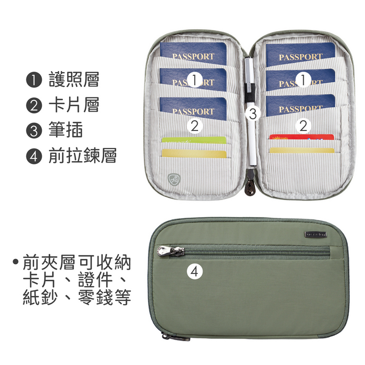 美國 TRAVELON - 防盜旅遊護照包(抹茶綠)