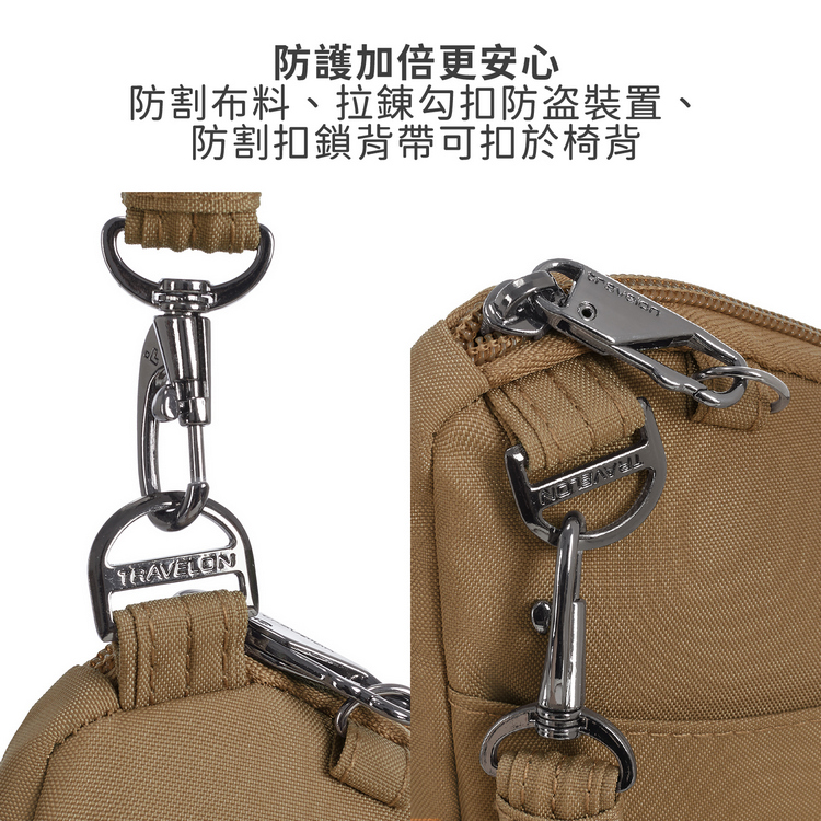 美國 TRAVELON - Runways 3層直式防盜斜背包(拿鐵棕)