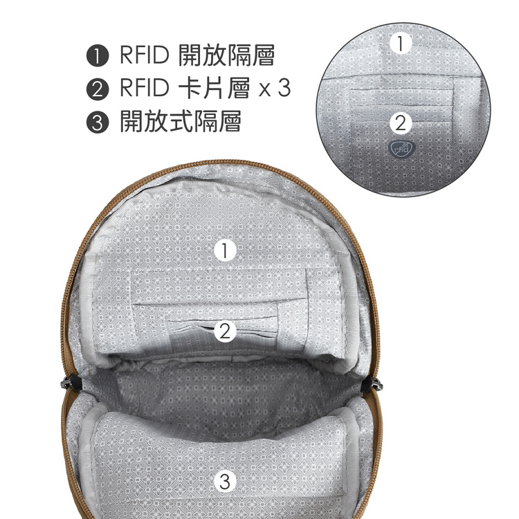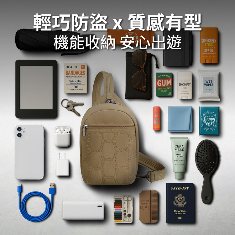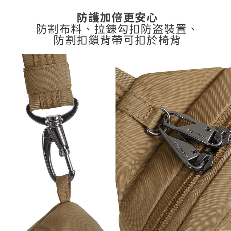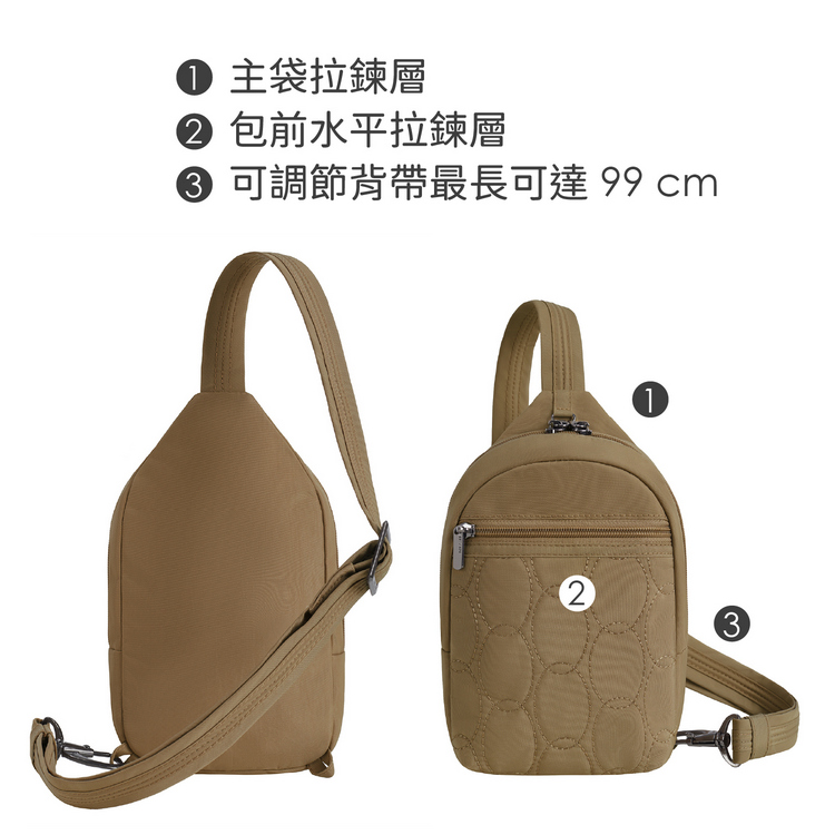 美國 TRAVELON - Runways雙層防盜斜背胸包(拿鐵棕)