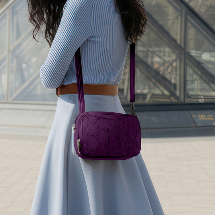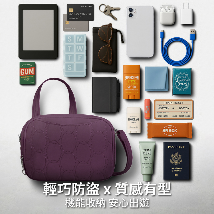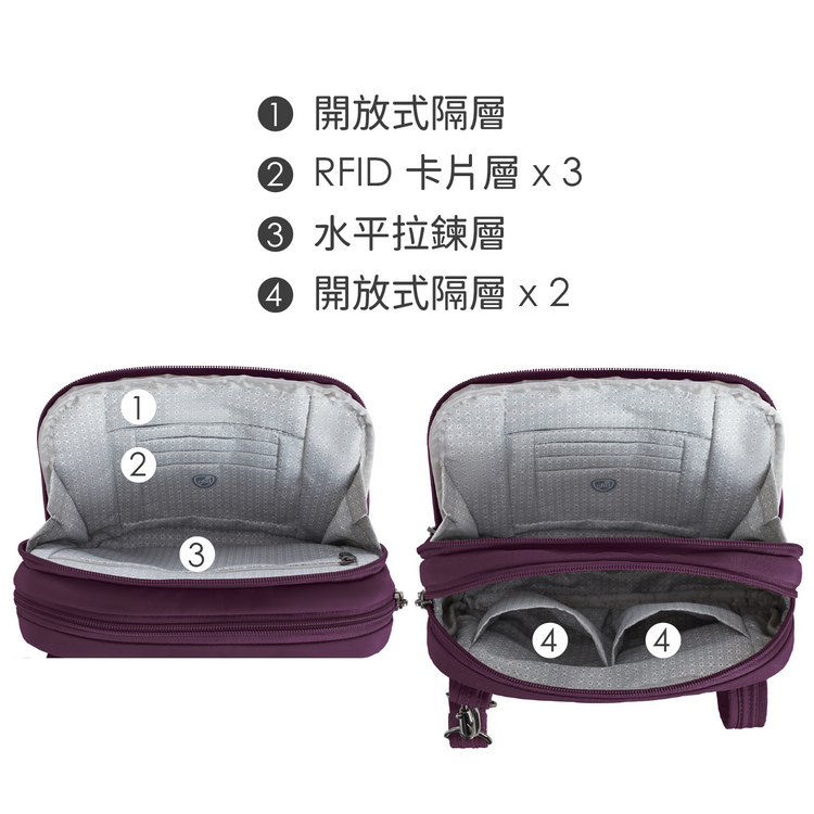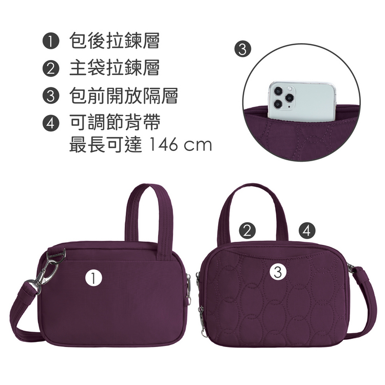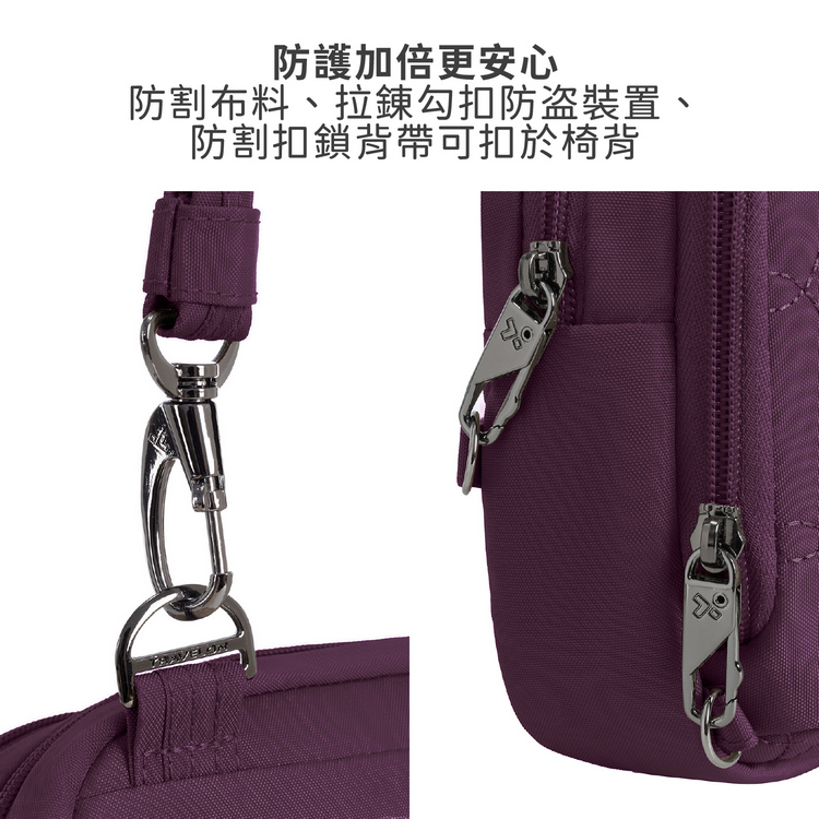 美國 TRAVELON - Runways 3層防盜斜背包(黑莓紫)