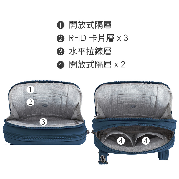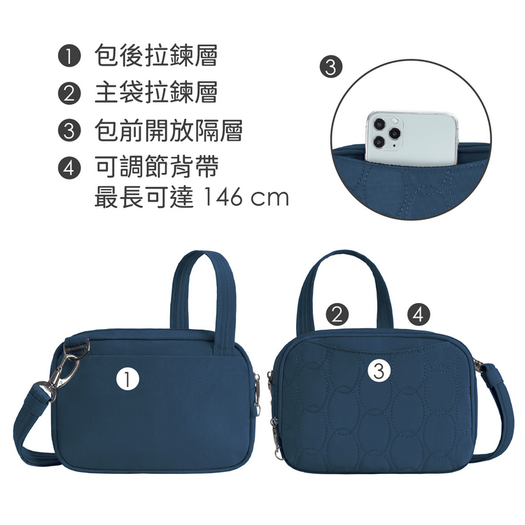 美國 TRAVELON - Runways 3層防盜斜背包(海軍藍)
