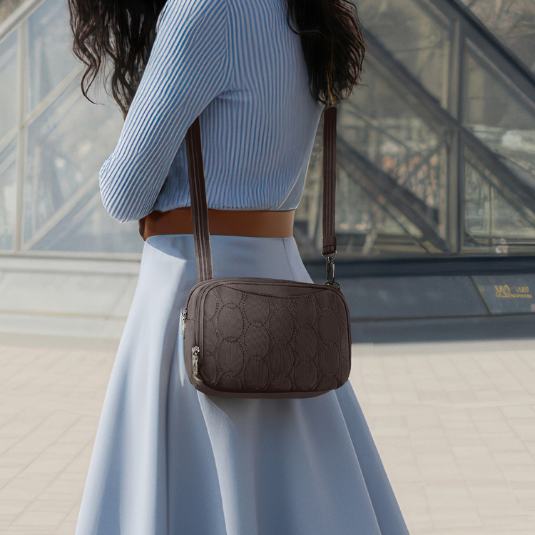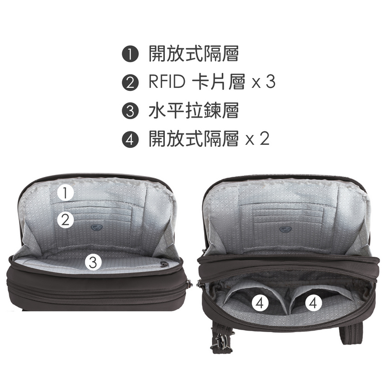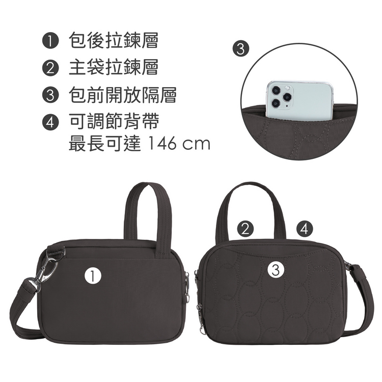 美國 TRAVELON - Runways 3層防盜斜背包(月影灰)