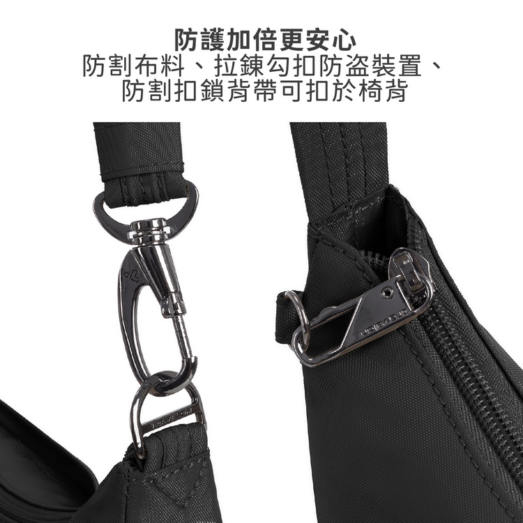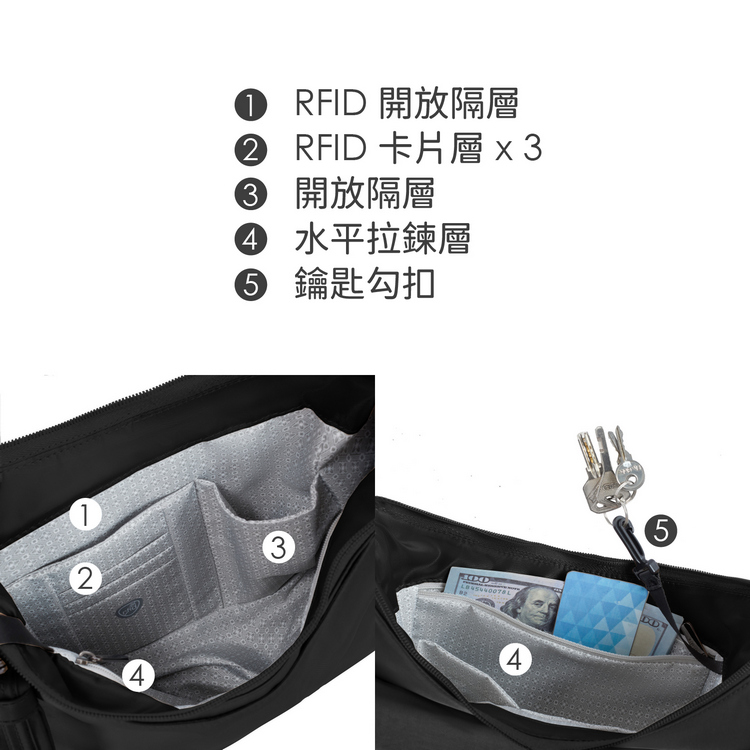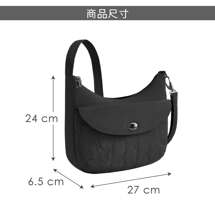 美國 TRAVELON - Runways 3層防盜斜背旋鈕彎月包(墨黑)