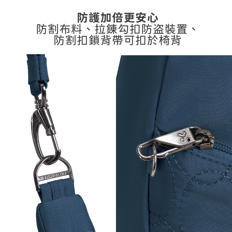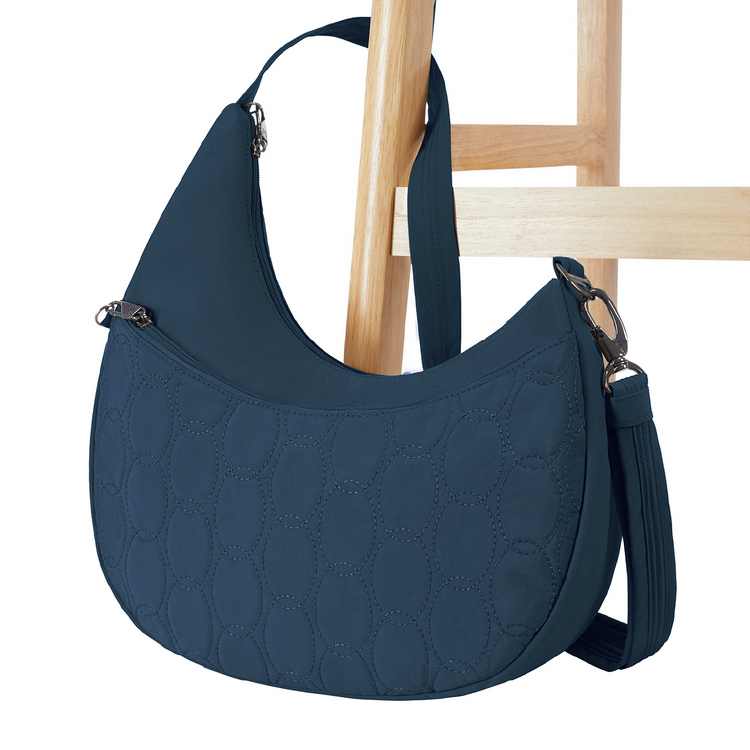 美國 TRAVELON - Runways 3層防盜斜背彎月包(海軍藍)