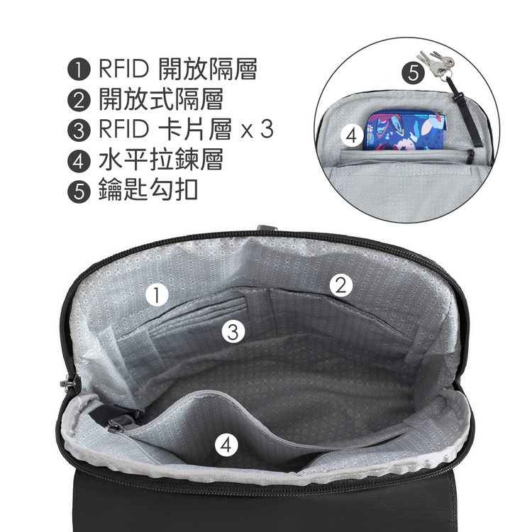 美國 TRAVELON - Runways雙層防盜後背包(墨黑)
