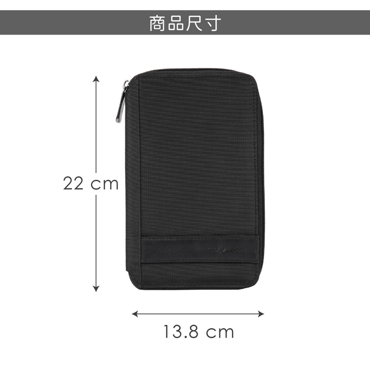 尺寸:合起時長 22 x 寬 13.8 x 高 2.2 cm、橫式長夾層長 20 cm、橫式拉鍊夾層長 16.6 cm、直式護照夾層 9.5 cm、卡片夾層 5.6 cm