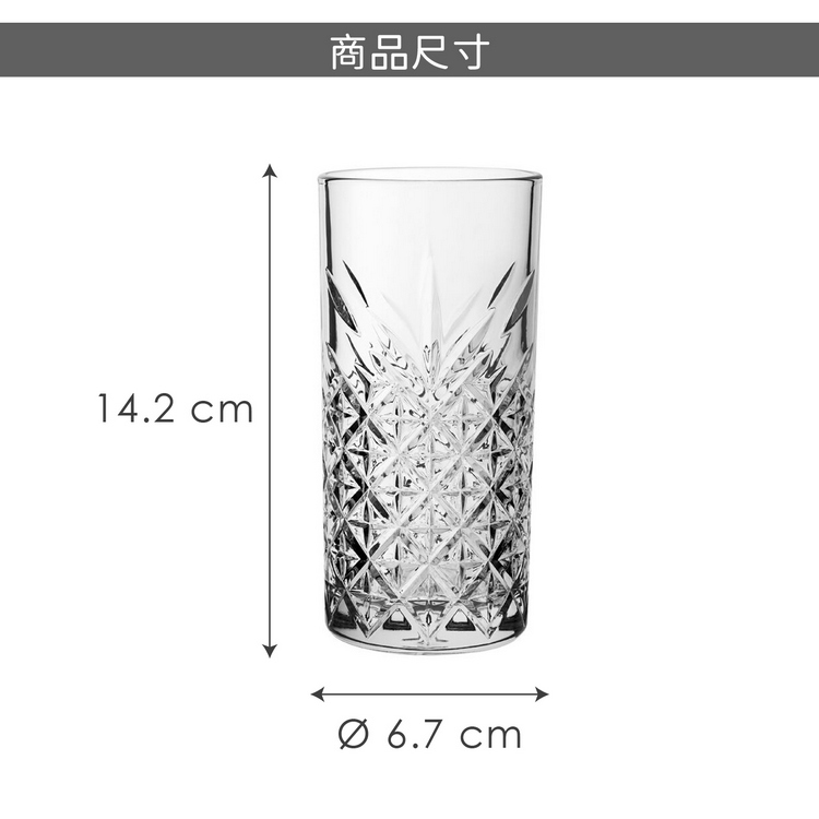 放鬆的夜晚與三五好友來杯調酒舒緩壓力;或是愜意午後享用甜點搭配沁涼的檸檬冰茶。推薦您此款高球杯,直杯式窗花紋杯身搭配厚底設計,予您沉穩感受,愜意享受當下的美好時光。