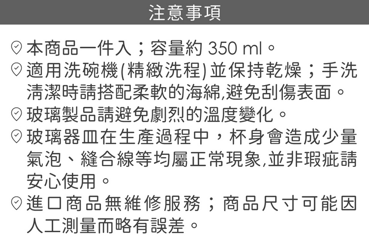 品牌:英國 Utopia材質:水晶玻璃尺寸:直徑 8.3 x 高 22.5 cm;杯口內徑 5.5 cm重量:195 g產地:捷克容量:約 350 ml