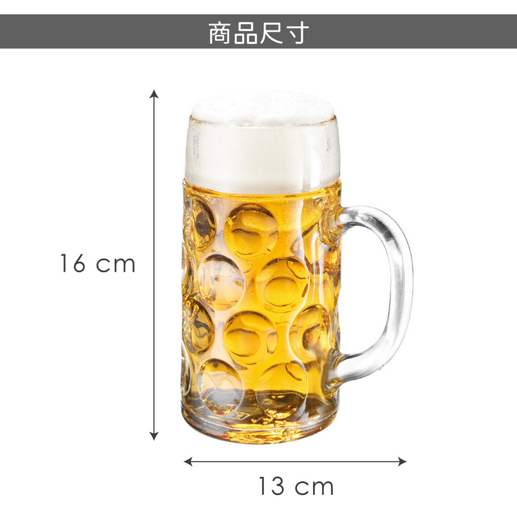 ※ 杯身上有 0.5 L (500 ml) 線條設計,方便測量啤酒與泡沫的比例。