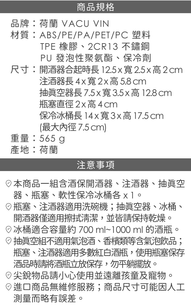 品牌:荷蘭 Vacu Vin